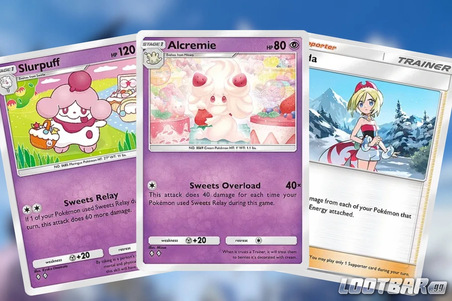 Because of how their abilities work, the ideal order is to set up and put out Slurpuff first, ensuring you get as many Sweets Relays as you can. Use the support cards to set up the other Pokémon, including at least one Alcremie. With Alcremie as your last Pokémon, use the power of all of the Sweets Relays you’ve used in the match to demolish any of your enemy’s remaining Pokémon.