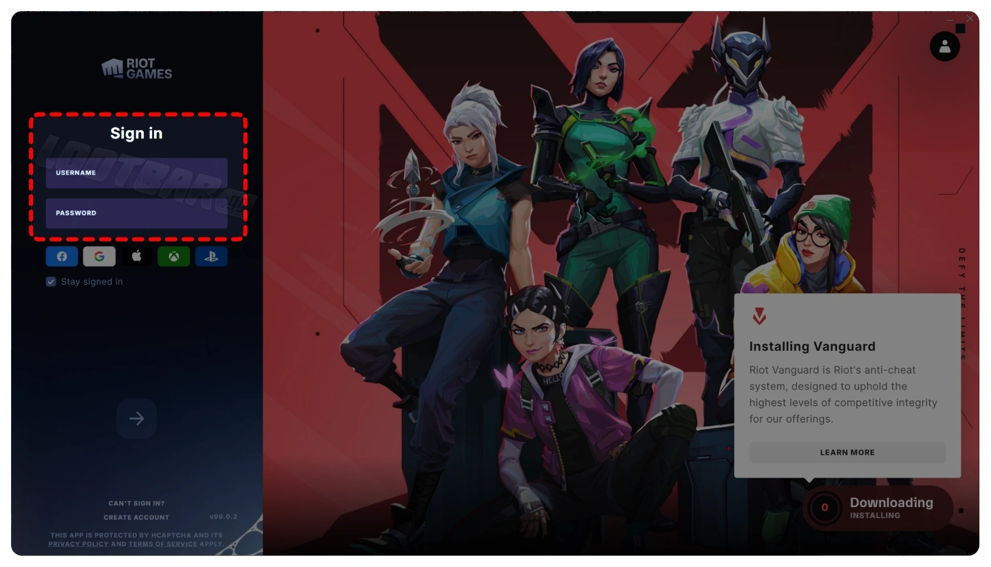 1. Geben Sie Ihren Riot-Benutzernamen und Ihr Passwort ein