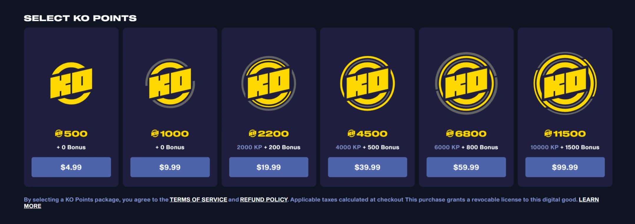 2. Wählen Sie die Menge an KO-Punkten, die Sie kaufen möchten.