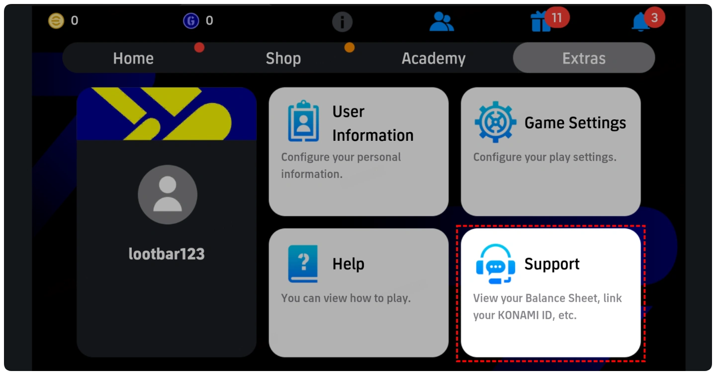 1. Toca "Extras" en la parte inferior de la pantalla de inicio y elige "Soporte".