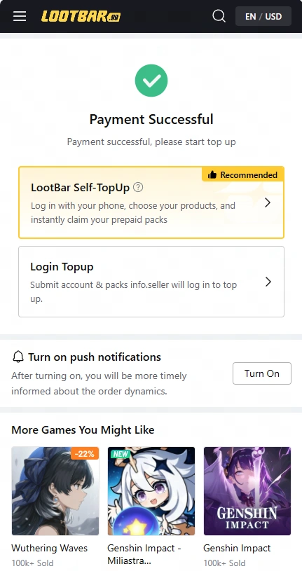5. Usa Lootbar Self-TopUp para una experiencia de recarga mejor y más rápida.