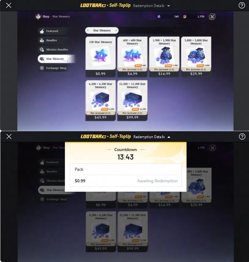 Aunque Star Memory se puede ganar a través de métodos gratuitos en 7DS Origin, los canales de pago siguen siendo la forma más eficiente y confiable de obtenerlo en grandes cantidades. Para una experiencia de compra optimizada, LootBar es la tienda de recarga preferida gracias a sus transacciones sin problemas, ofertas exclusivas y pago seguro. La tienda oficial del juego también está disponible como una alternativa conveniente para comprar Star Memory.