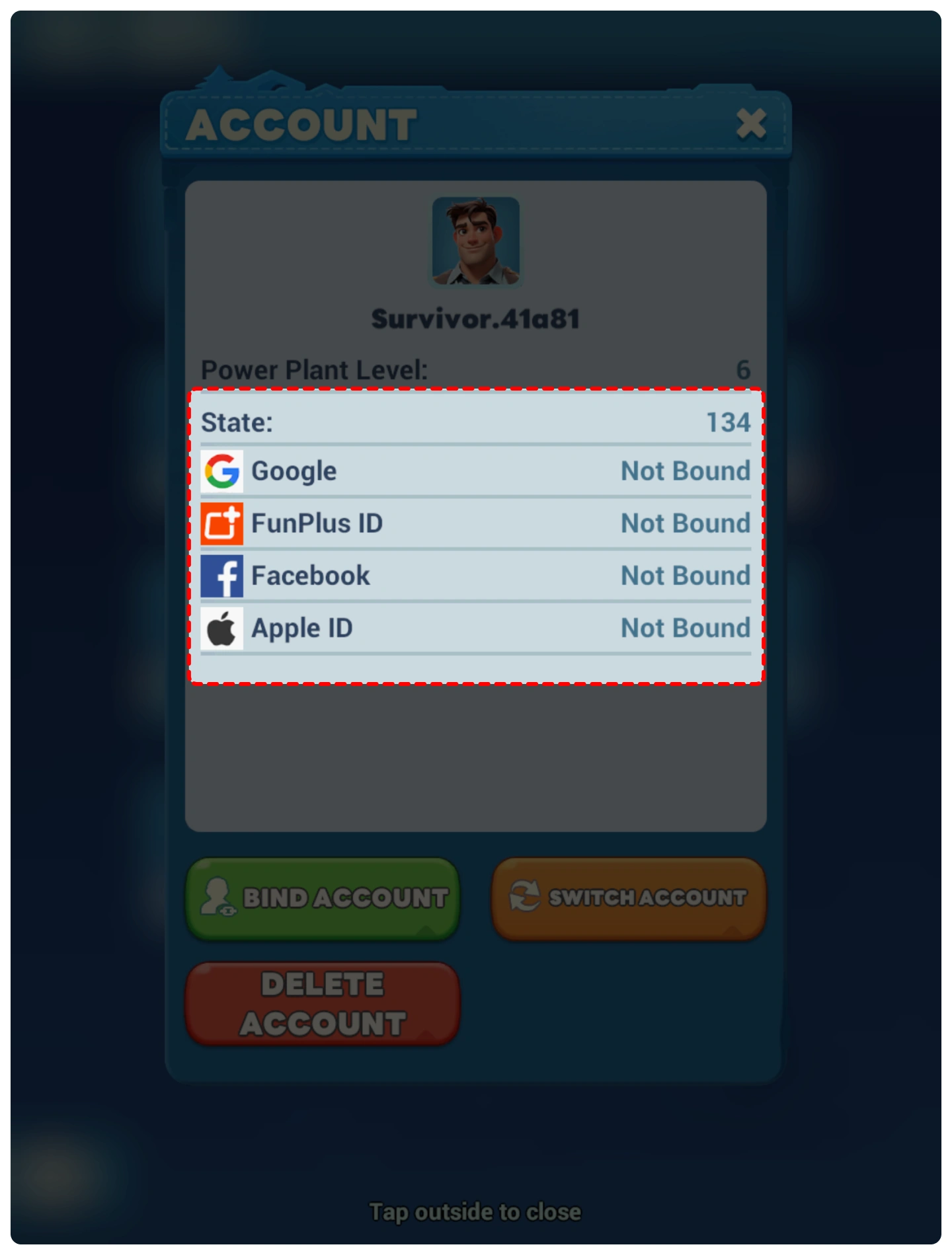 4. Se te pedirá que proporciones tu información de cuenta siguiendo la guía de recarga de Tiles Survive .