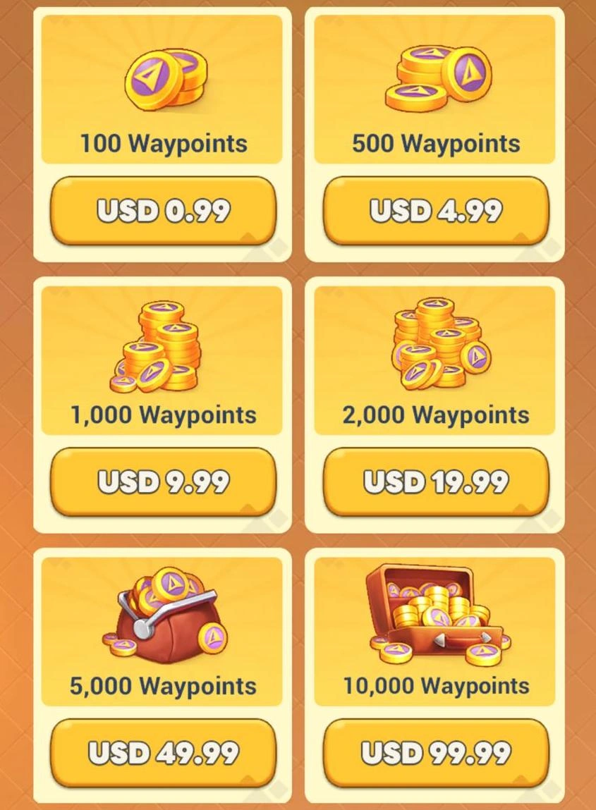 Los Waypoints son fichas en el juego utilizadas para comprar Gems y otros paquetes del juego, lo que te permite adquirir paquetes especiales y desbloquear artículos exclusivos o fortalecer a tus personajes.