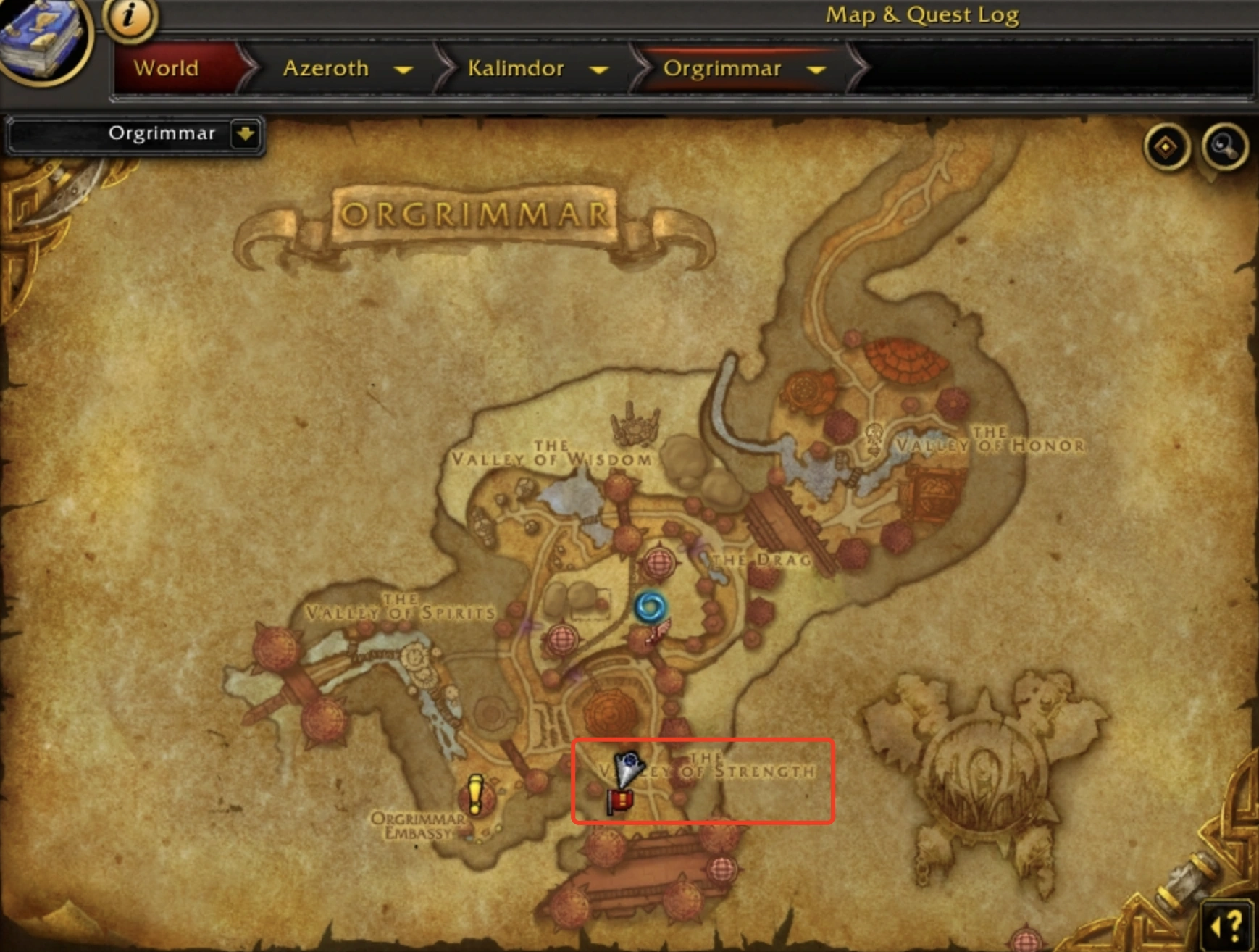A l'entrée de la banque d'Orgrimmar in Valley of Strength