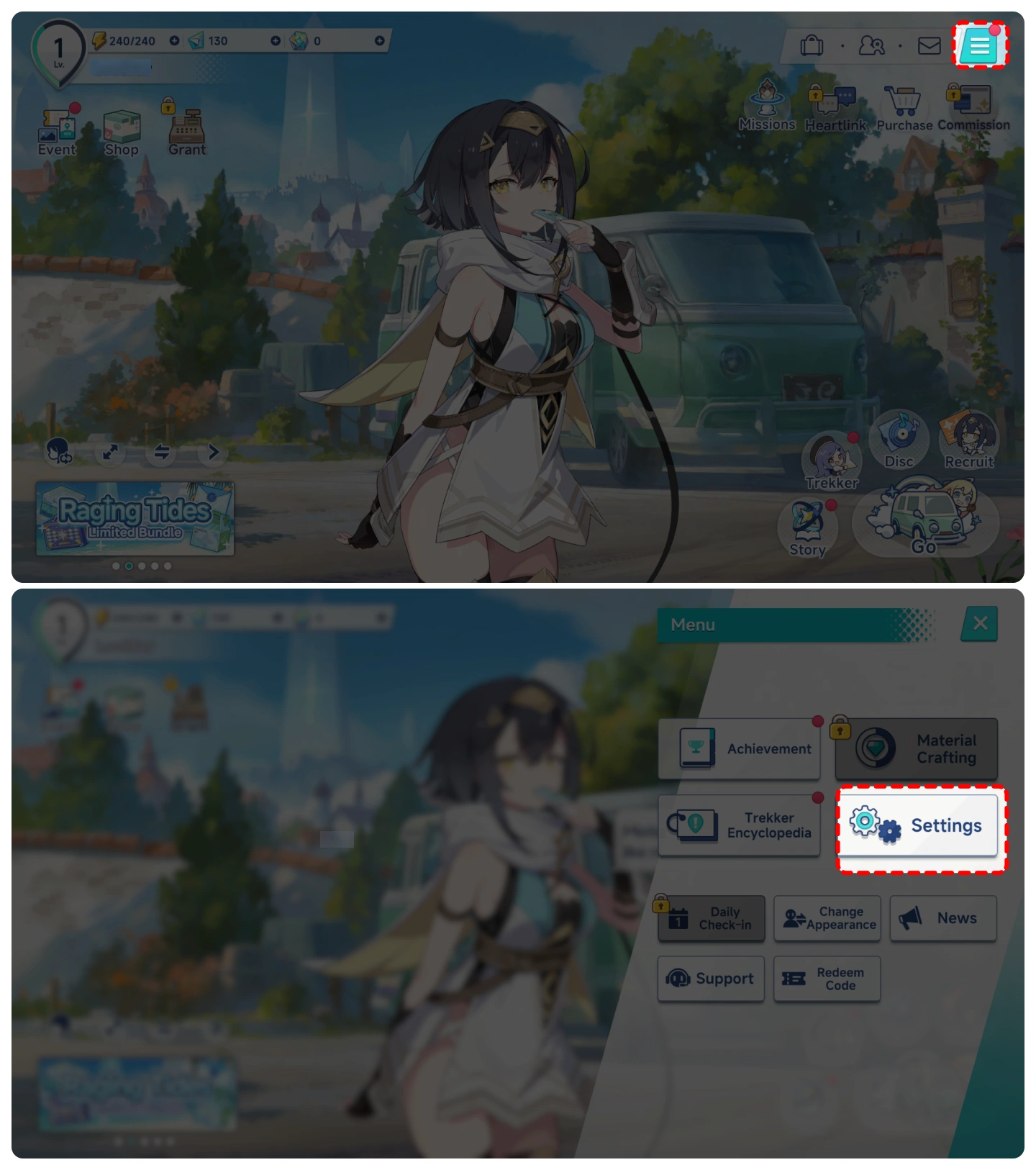 1. Entrez dans l'interface du jeu, cliquez sur le bouton en haut à droite. Et ouvrez la page des Paramètres.
