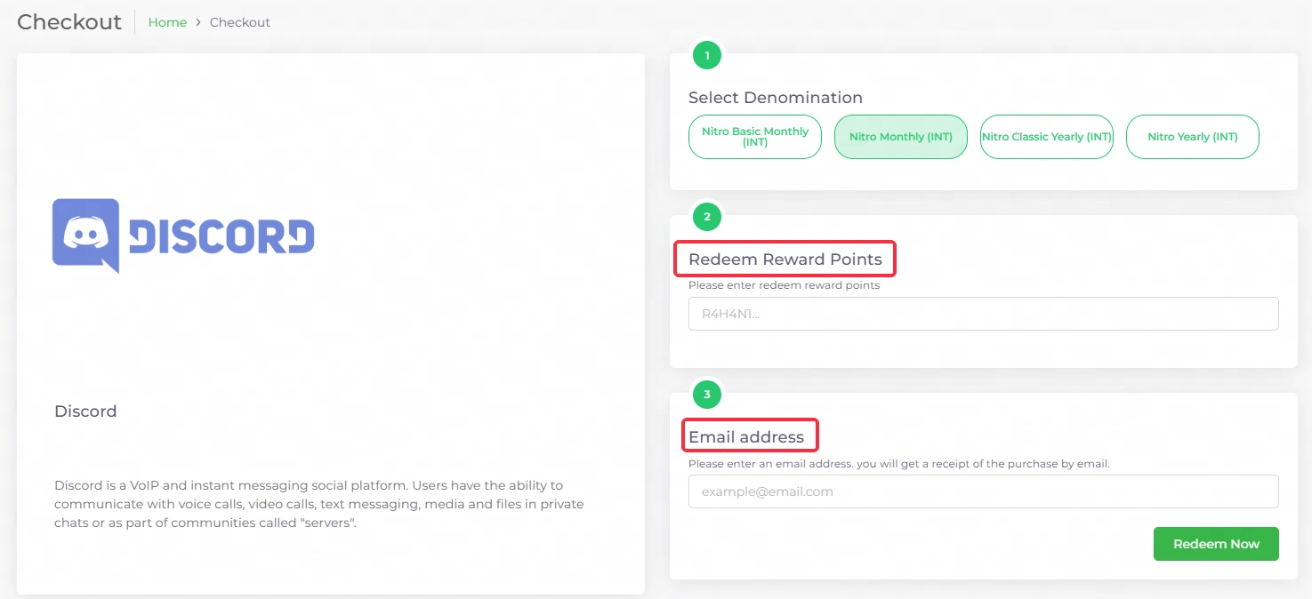 2. On the Home page, click Gift Card > Discord Nitro Subscrption.
