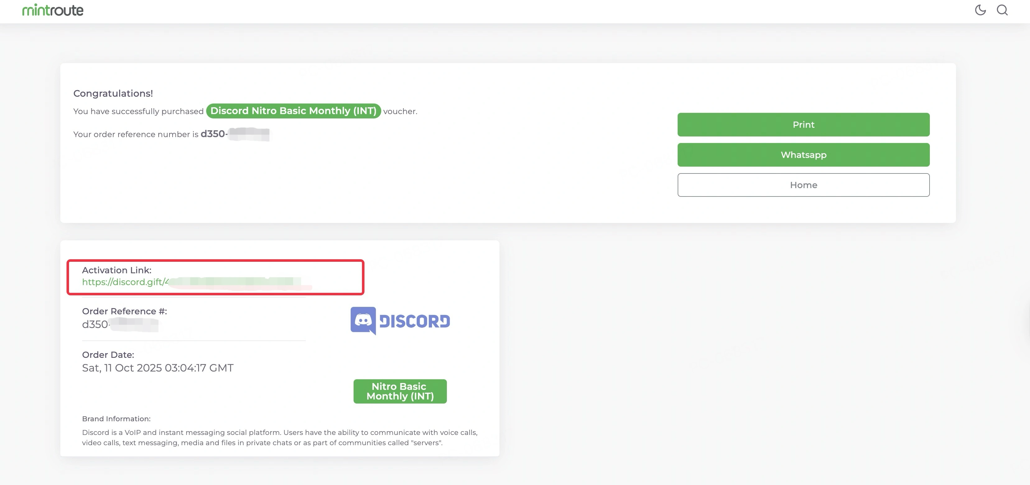 Product1-Month Discord Nitro Basic Subscription