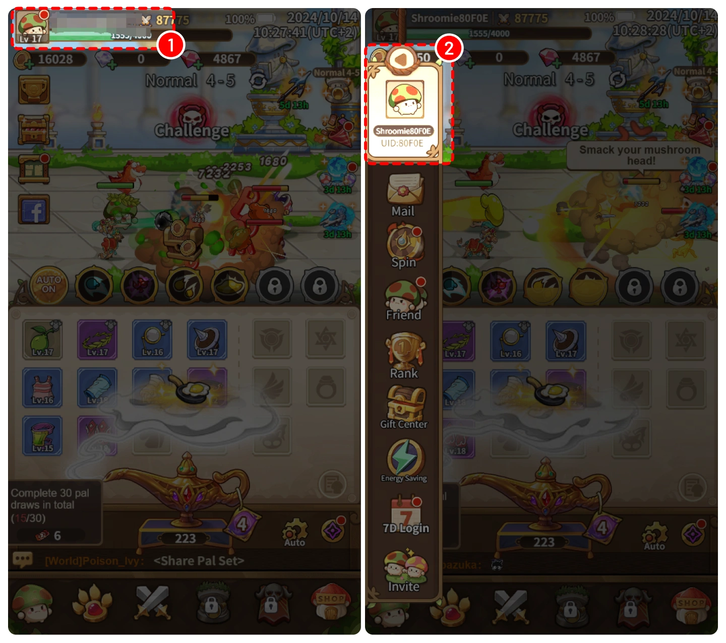 Genie Gives provides more amazing Geaz. Genie is a a spirit in a lamp, who will offer you different rarities of equipments. You can use it to equip your Mushroo Warrior for combat index upgrade. The higher level of the lamp, the higher rarity rate of equipment you can get. Therefore, it is an effective way to upgrade your Mushroom Warrior that you need to collect more resources to develop the lamp.