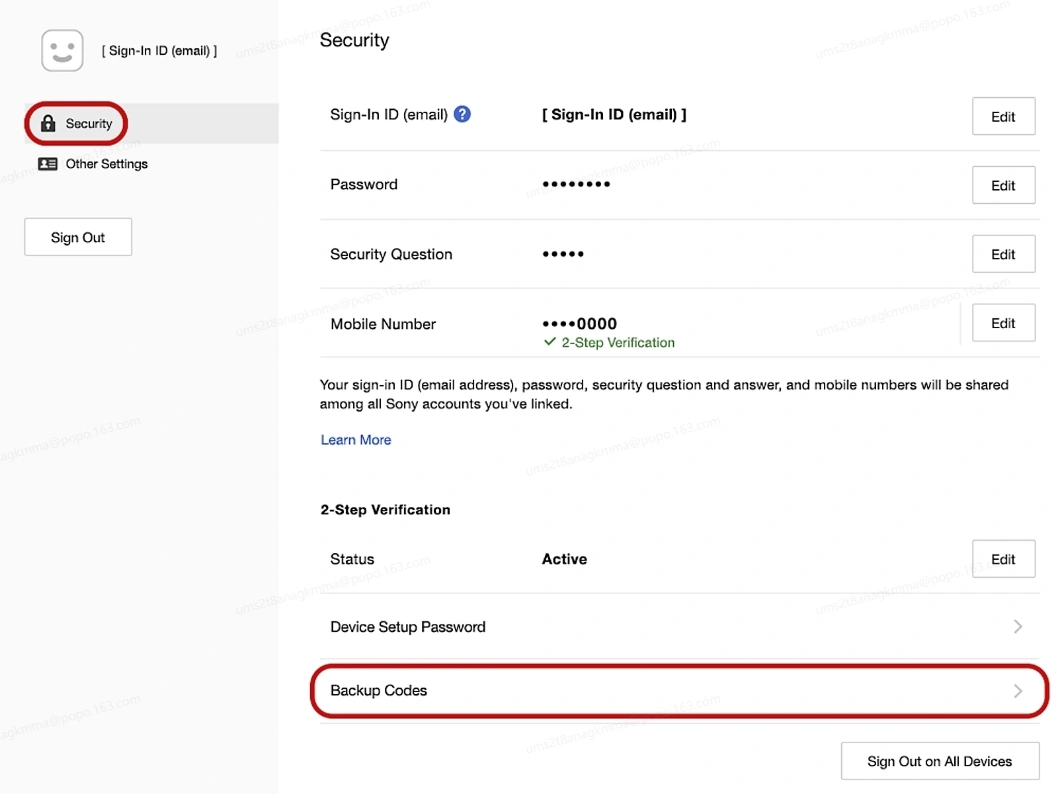 На этой странице нажмите "Безопасность" > "Резервные коды" > Скопируйте резервные коды.