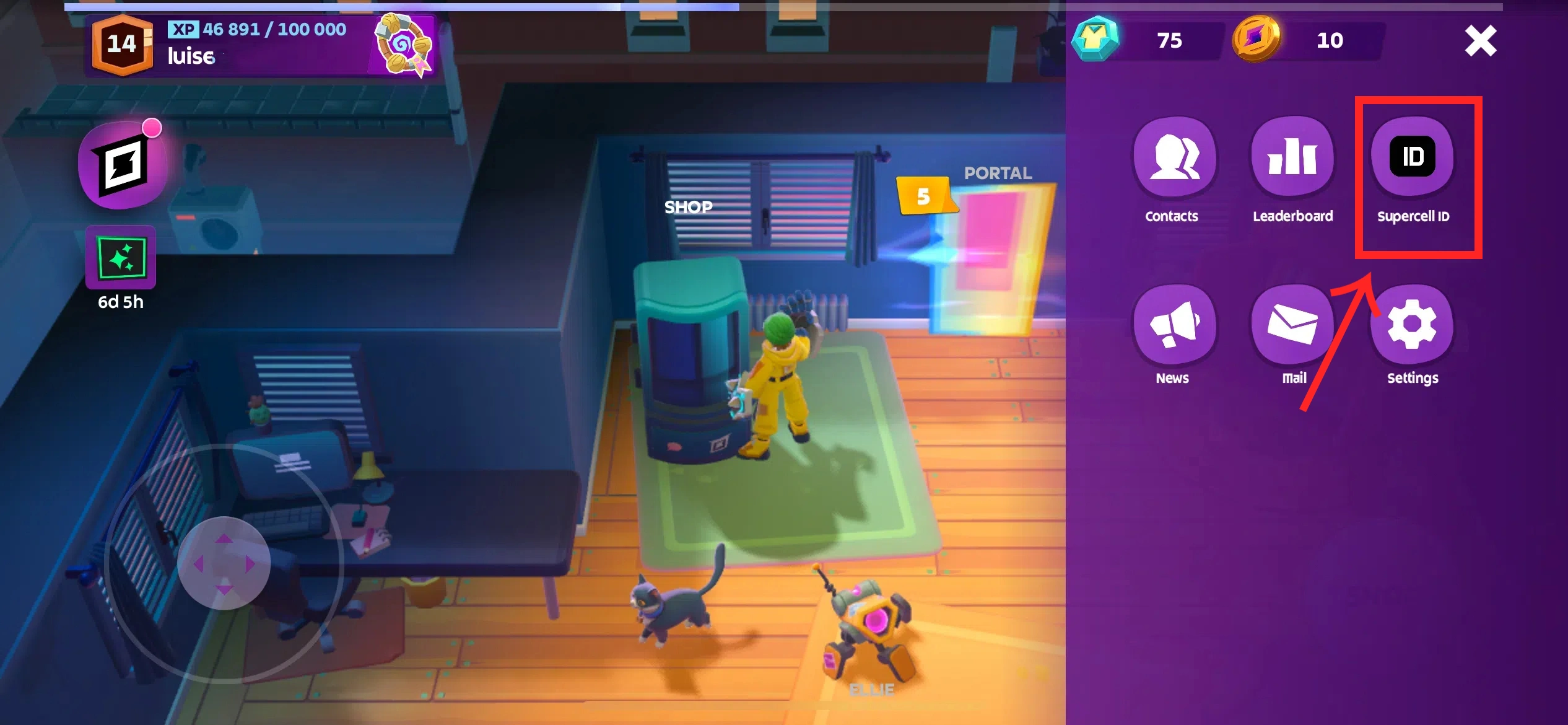 Нажмите кнопку в правом верхнем углу, чтобы войти в настройки и проверить свою учетную запись Supercell ID