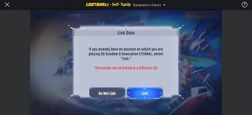 Настоятельно рекомендуем официальный магазин SD Gundam - безопасно и надежно. Однако, если вы ищете недорогую и безопасную платформу для пополнения, LootBar - это умный выбор. LootBar обеспечивает безопасное, быстрое и дружелюбное пополнение SD Gundam G Generation Eternal с гарантией отличной ценности. Вы можете легко приобрести Diamonds, виртуальную валюту игры, на LootBar.