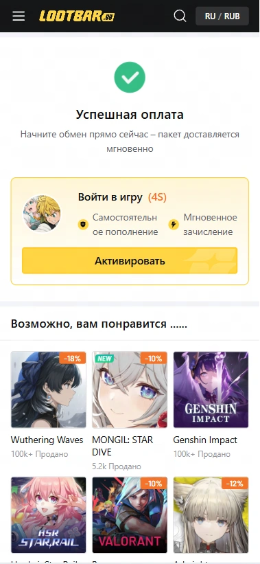 Глобальный магазин для пополнения игр и торговли предметами, LootBar предлагает безопасные транзакции и широкий охват игр для игроков по всему миру. Мы сотрудничаем с многочисленными игровыми гигантами и поддерживаем более 100 приложений с пополнением на различных языках, включая Genshin Impact, Honkai: Star Rail и Wuthering Waves. Если вы хотите узнать больше об играх, поддерживающих пополнения, пожалуйста, перейдите на страницу LootBar Game Top-Up.