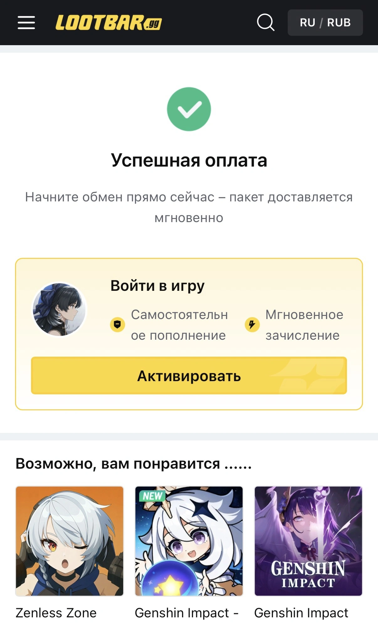 Если вы уже пополняли счет в игре или через какие-либо платформы с этим персонажем (аккаунтом) ранее, вы получите следующее: