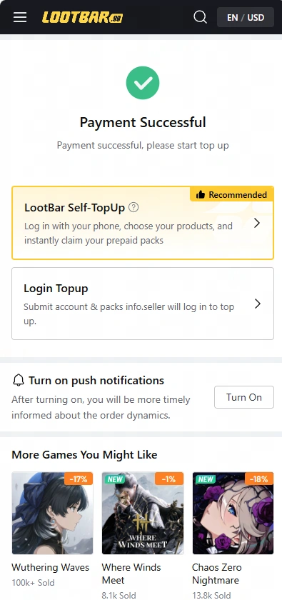 A global platform for game top-ups and item trading, LootBar.gg offers secure transactions and wide game coverage for players worldwide. We cooperate with many game giants and support more than 60 applications with different language top-ups, such as Genshin Impact, Honkai: Star Rail, and Wuthering Waves. If you want to know more about games that support recharges, please click on the LootBar Game Top-Up page.