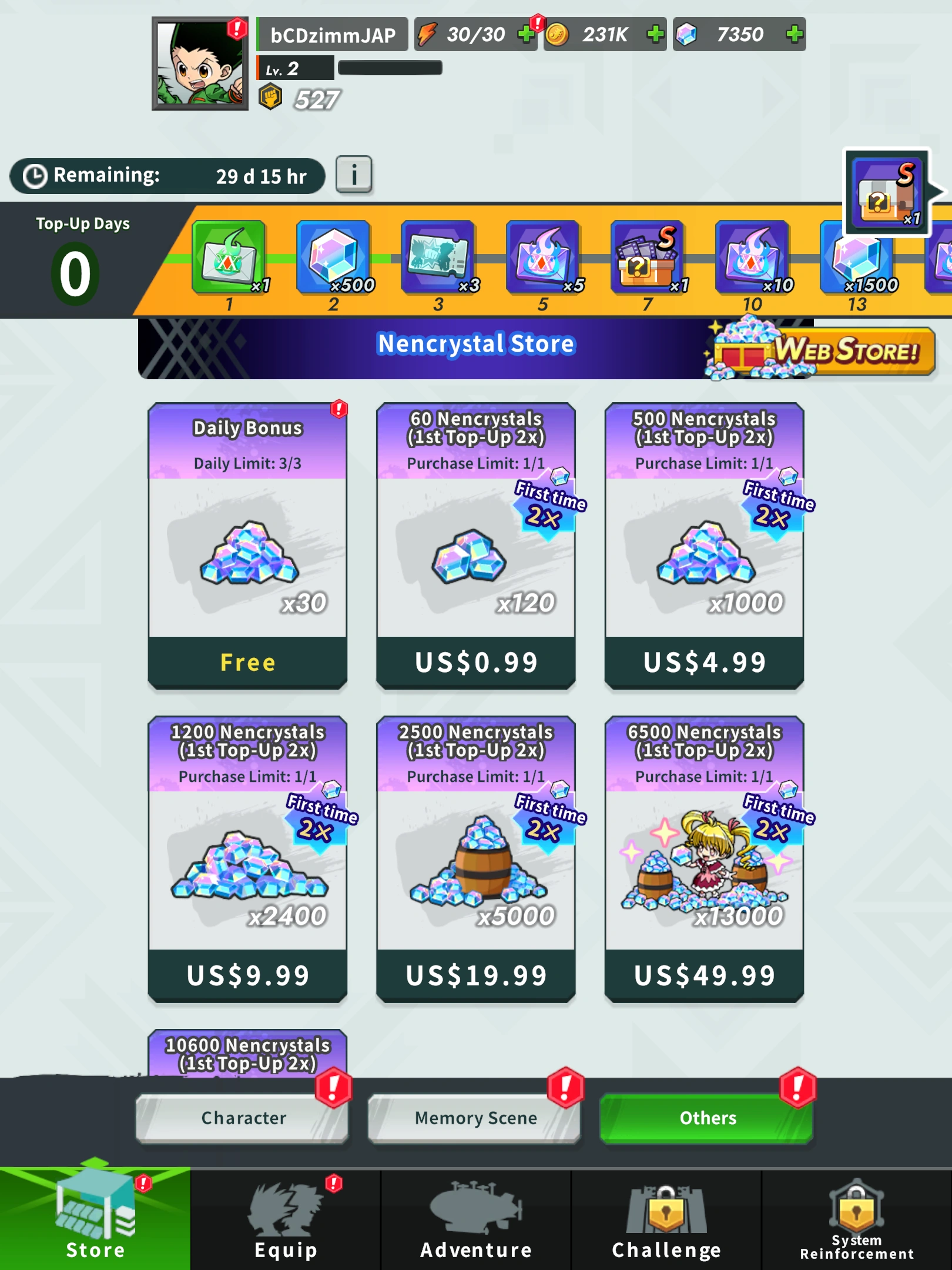 3. Choose the desired HUNTER x HUNTER NEN x SURVIVOR package and specify the number of Nen Crystals you wish to purchase. Click "Top-up Now."