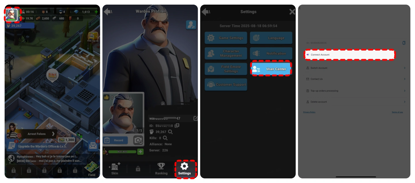 1. You can obtain your Account details in the Connect Account within the User Center. If you are logged in as a guest, please bind your Google/Facebook Account in accordance with the following guidelines.