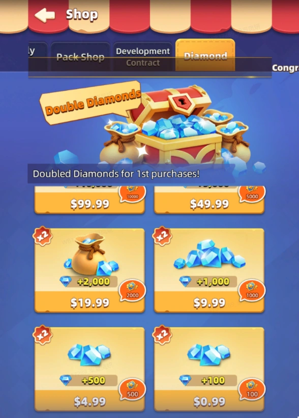 Players can obtain Diamonds by the following methods: