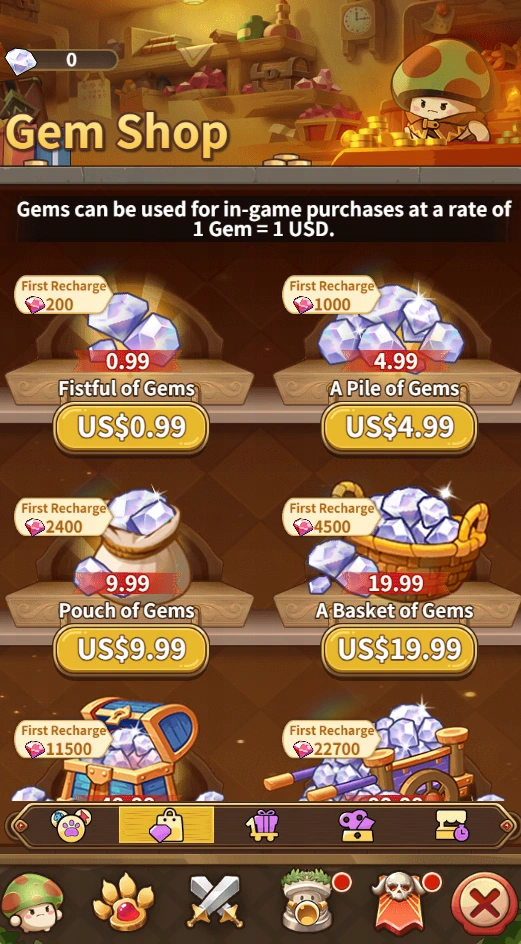 You will receive additional in-game rewards in your first-time top-up in Legend of Mushroom