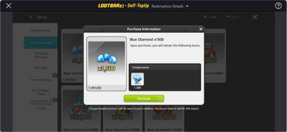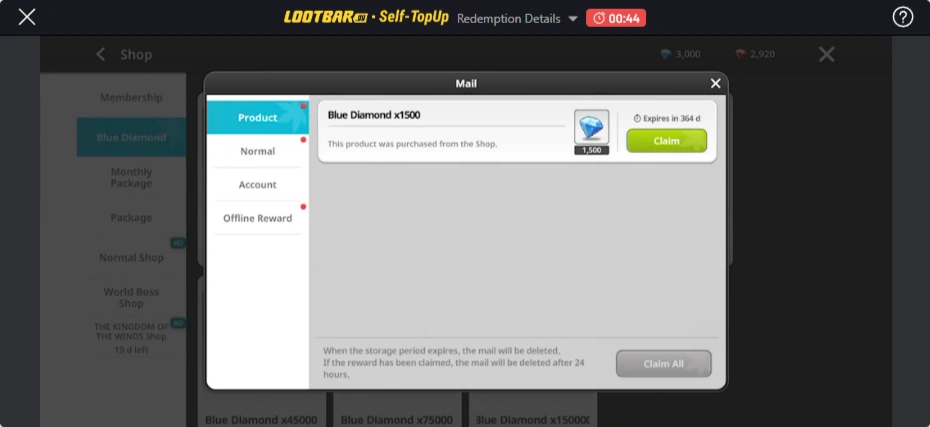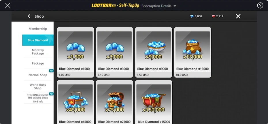 In MapleStory: Idle RPG, Blue Diamonds are a premium currency available only through top-ups with real-money purchases. To recharge on LootBar, simply visit the site, choose MapleStory: Idle RPG, select the Blue Diamonds amount you want, and complete your payment quickly and safely.