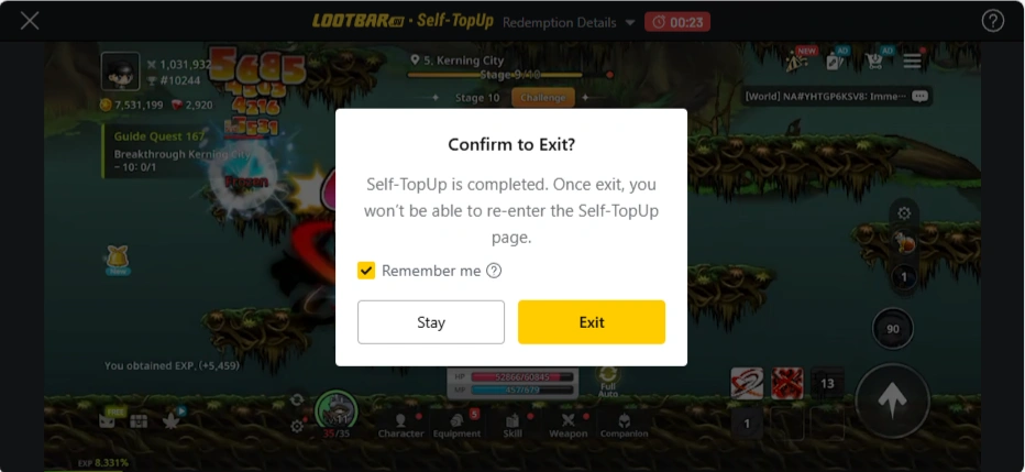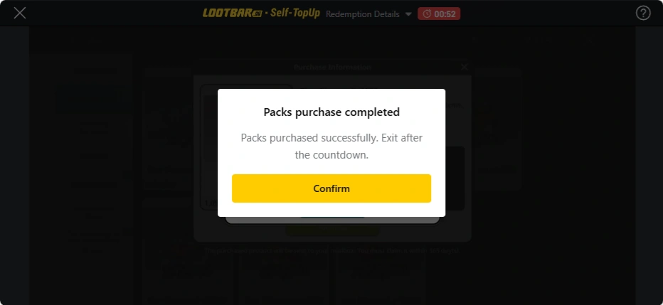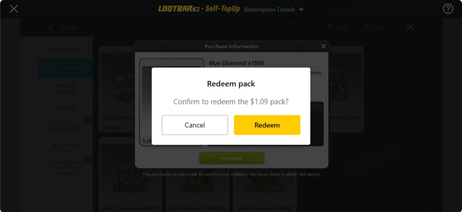 3. Confirm the information of the gift pack you want to purchase, claim your gift package, and your login information will be automatically cleared after exiting Self-TopUp.