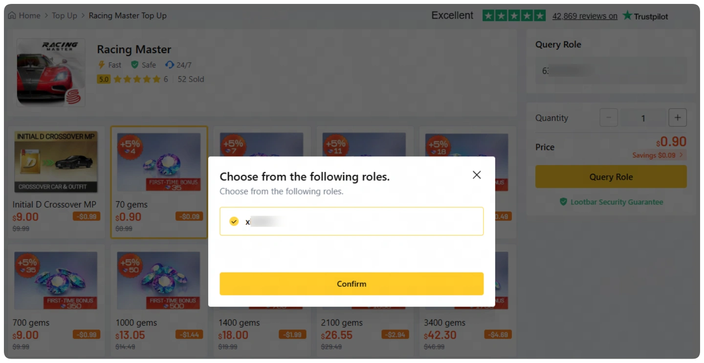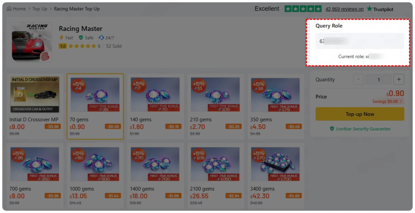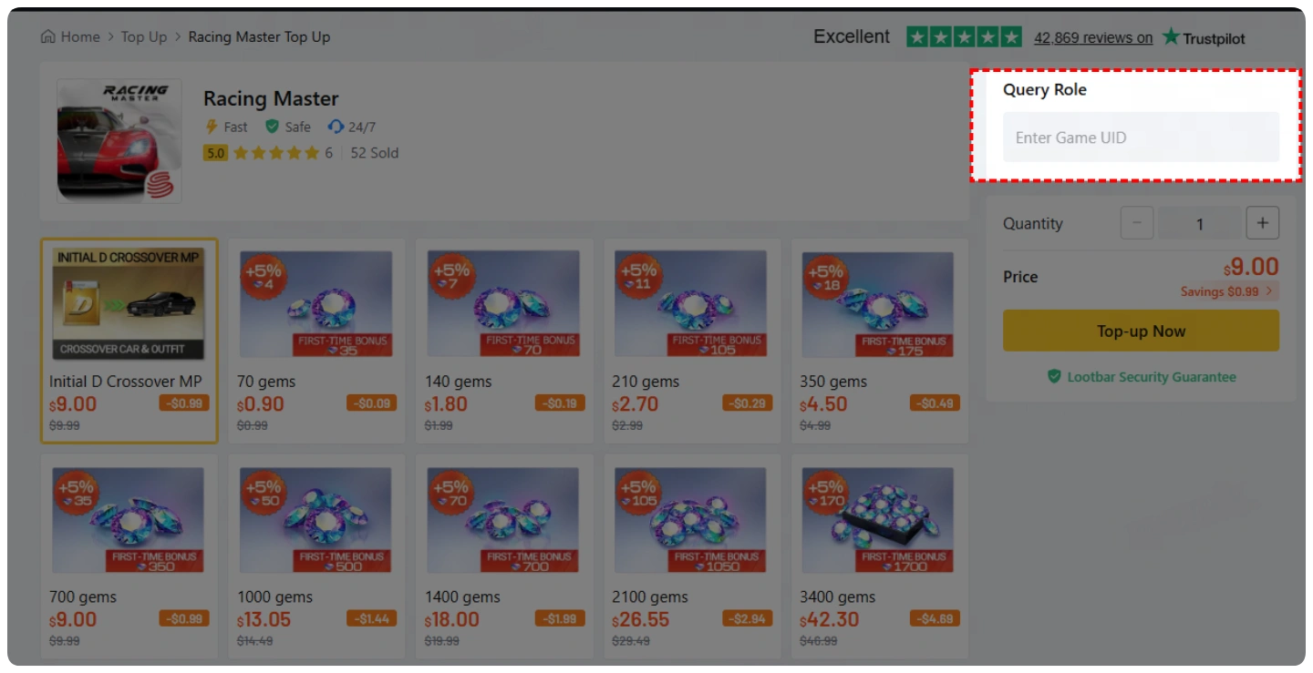 Choose LootBar for access to exclusive promotions, bonus rewards, and limited-time deals during Racing Master top-ups.