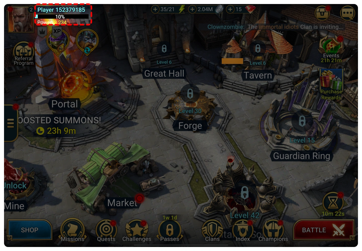 3.Clan Boss / Arena Rewards: Performing well in Clan Boss fights or in Arena gives Gems among the rewards.