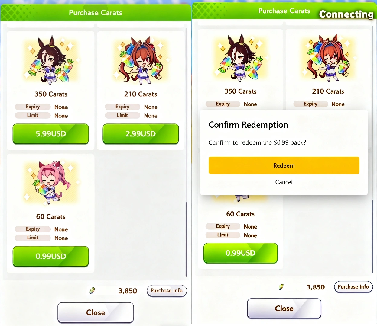 3. Determine how many Umamusume: Pretty Derby Carats you want.