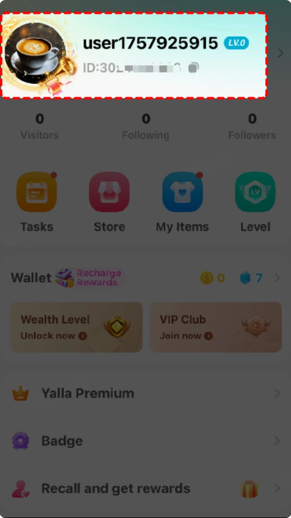 1. Open Yalla and tap on your profile picture in the top left corner.