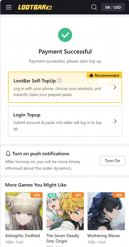 5. 使用 LootBar 自助充值,享受更好更快的充值體驗。