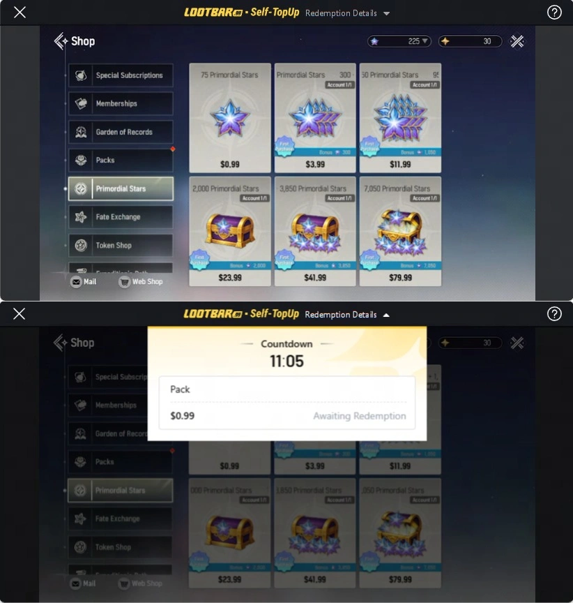 在 魔御:STAR DIVE 中,太初之星 主要通過充值或真實貨幣購買獲得。對於希望最大化價值的玩家,LootBar 提供無縫的充值體驗,包括獨家優惠、安全支付和快速交付。官方遊戲內商店也是購買 太初之星 的便捷替代方式。